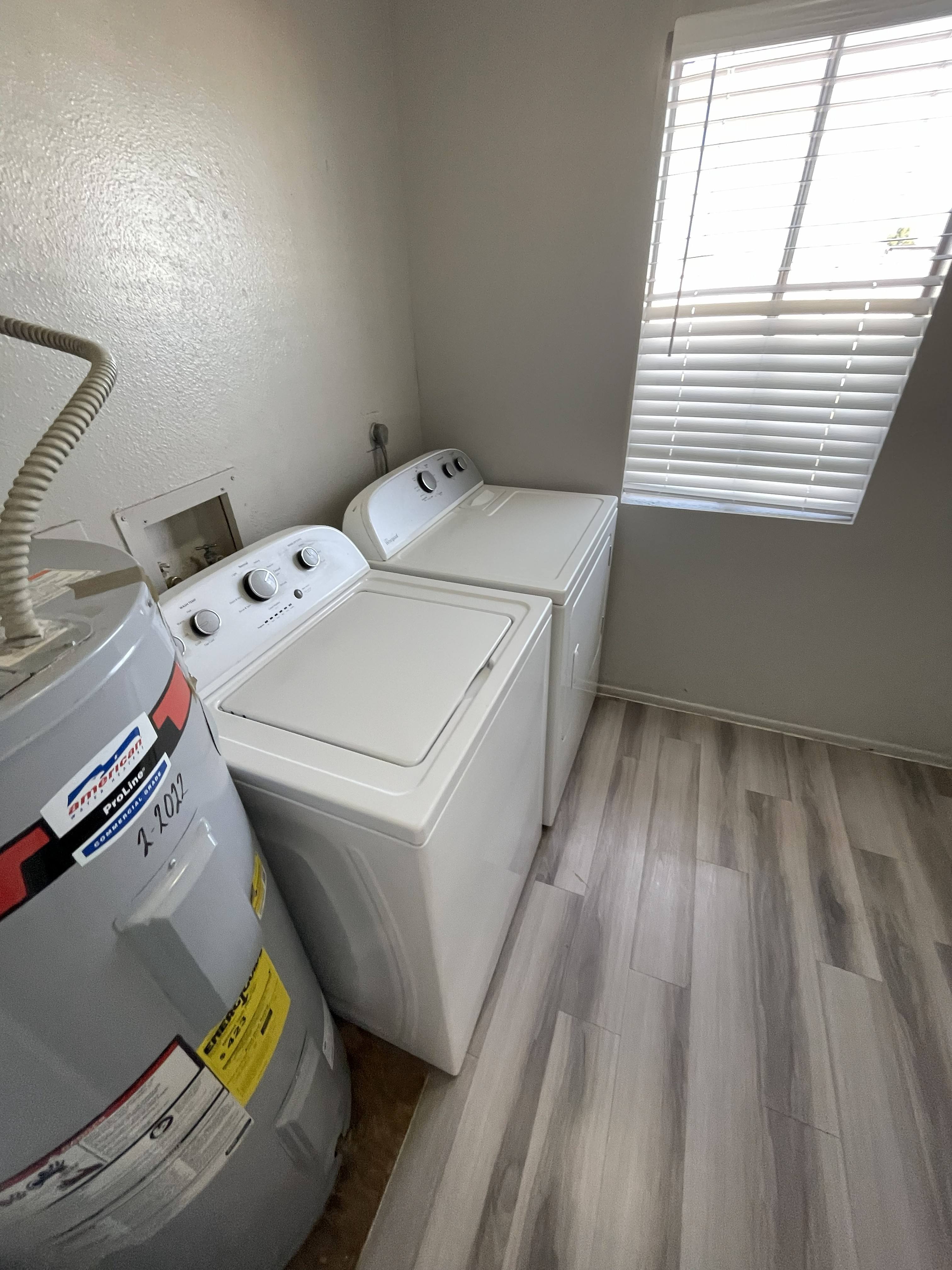Move-In Special! 2Bdm 2Ba Glendale Unit with *NO* Carpet Generously sized 2 bedroom 2 bathroom unit located in Glendale with wood plank flooring and custom grey paint throughout. As you walk-in the front door, you will be greeted by a bright open concept living room and eat-in kitchen area. The kitchen has updated shaker style cabinets, double sink and full black appliance package. The primary bedroom also has an updated vanity in the private bathroom and walk-in closet. Other amenities include a dedicated laundry room with washer/dryer, carport and an enclosed patio with private yard area. This cozy community has a pool for the hot Arizona summer, a dog station and is close to the historic area of Glendale with lots of shopping and restaurants. Pet-friendly for up to two spayed/neutered pets with a $300 fee per pet and $35 monthly pet rent. We do not list on CRAIGSLIST OR FACEBOOK MARKET PLACE SO IF YOU SEE IT ON THERE IT IS A SCAM. $50.00 non-refundable application fee per adult, age 18 or over. $1,195/months price with an 18 months lease OR $1295 for 12month lease. Total price includes monthly pest control and common area maintenance. Base rent does not include monthly $88 W/S/T reimbursement. Full security deposit of $1,295.00 due upon approval. Move in date must be between 7 & 30 days from lease signing/payment of security deposit. If moving in on or after the 5th then pro-rated current month rent is due as well as the following full month. All rent is due 7 days prior to move in.